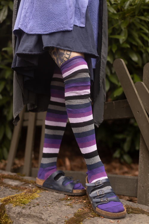 Striped socks made with recycled fibers and lots of love and color, we think these knee socks are a dream come true! Made in the USA.